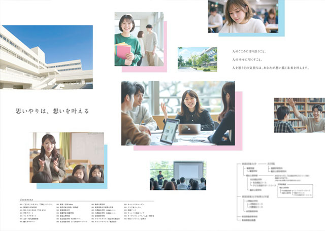 - 学校案内・学部案内・募集要項・広報紙・シラバス・便覧・名簿・試験問題・出願書類・ポスター等各種広告物・ホームページ・封筒・名刺など